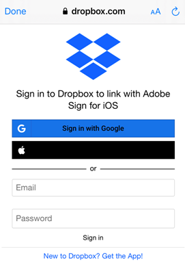 O Adobe Acrobat Sign se integra a vários serviços de armazenamento na nuvem de terceiros. Conectando-se a essas contas com o Adobe Acrobat Sign, é possível criar fluxos de assinatura que se integram perfeitamente a documentos em diferentes locais. Além da Document Cloud da Adobe (habilitada por padrão), é possível conectar-se a provedores como Dropbox, Box e Google Drive.