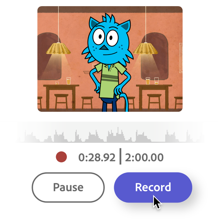 Vælg en figur. Upload en lydfil, eller optag din dialog.