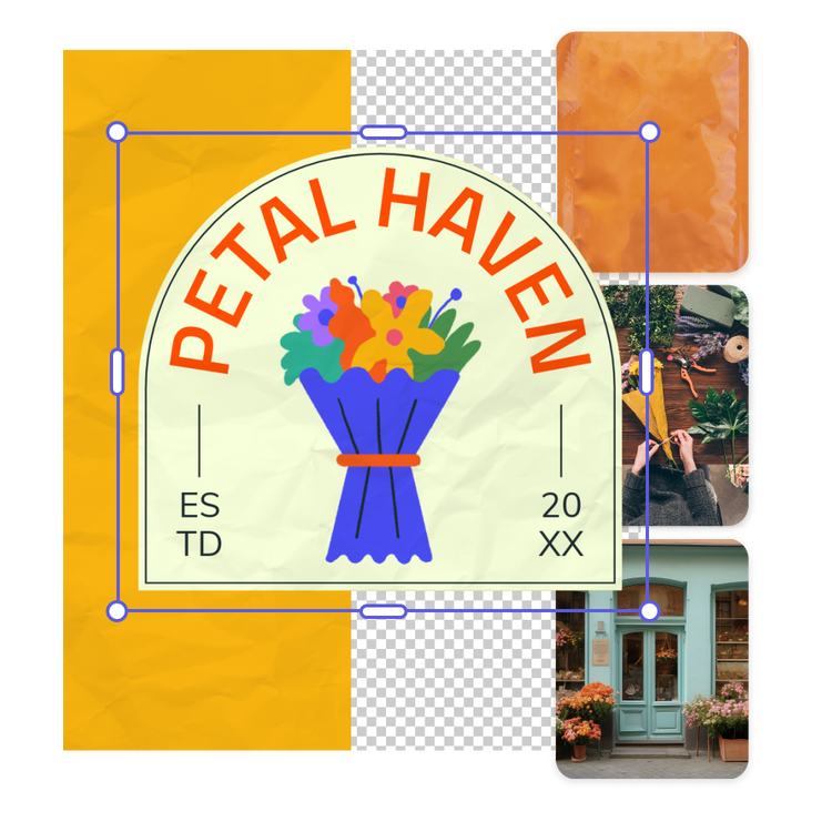 Rediger det baggrundsfrie logo i Adobe Express på nye og spændende måder. Eksperimentér med kuraterede skrifttypeanbefalinger. Tilføj en baggrund, der passer til årstiden, eller gør dit logo til et midlertidigt profilbillede. Der er uendelige kreative muligheder, uanset om du ønsker at opdatere dit brandlogo eller prøve et helt nyt look.