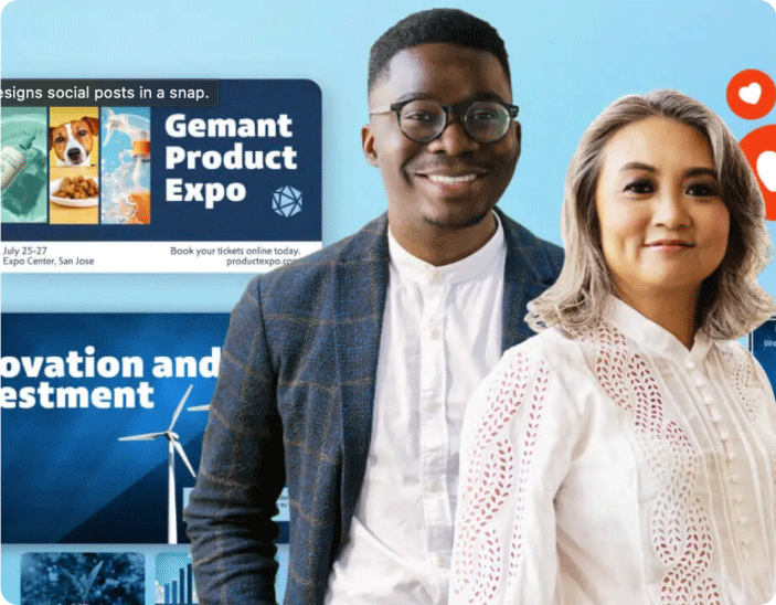 Lav øjeblikkeligt dit design om til en social kampagne. Tilpas størrelsen for enhver kanal med et klik, alt sammen i en enkelt designfil. Download. Planlæg.