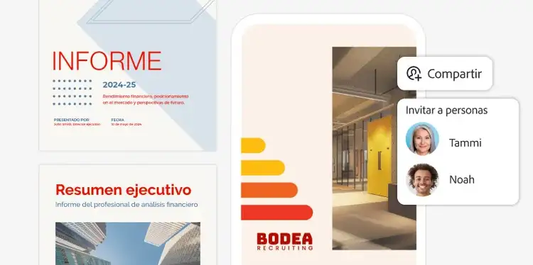 Obtén información más rápido con el Asistente de IA de Acrobat: resume, analiza y extrae los principales datos de documentos complejos, con citas verificables para los registros de auditoría. Los equipos pueden colaborar y gestionar el conocimiento en PDF Spaces seguros y centralizados, lo que facilita la conversión de archivos estáticos en centros de conocimiento conversacionales. Y con Adobe Express, todos pueden crear contenido excepcional y acorde con la marca a gran escala.