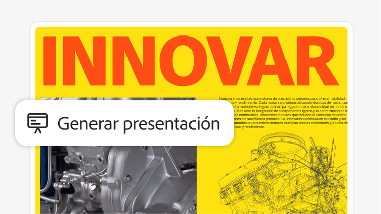 Genera presentaciones comerciales, publicaciones para redes sociales, folletos y mucho más con solo una indicación. Da vida a tus ideas mediante plantillas profesionales.