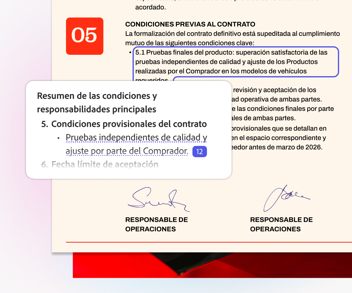 Genera resúmenes claros y rápidos de tus archivos con citas precisas que vinculan directamente con la fuente en tus documentos.