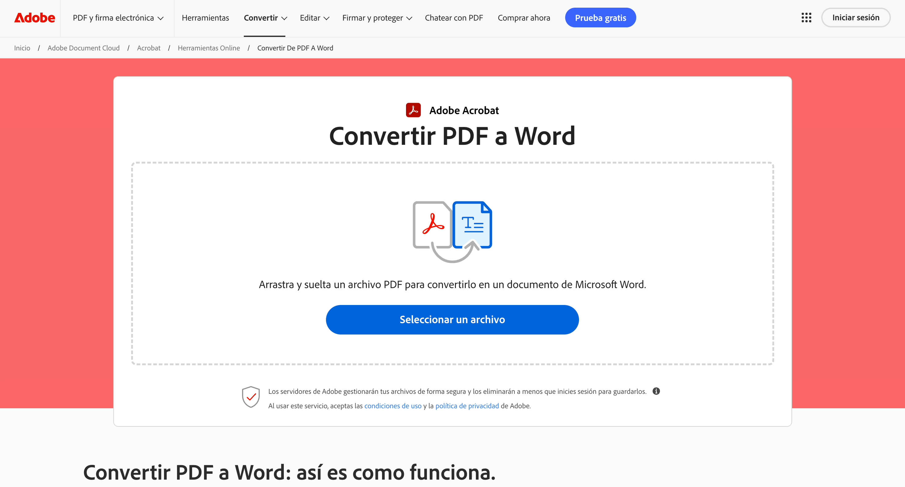Consejo: Las herramientas online de Acrobat no sólo permiten que puedas convertir un PDF en Word, sino también pasar un PDF a un Excel, comprimir un PDF o incluso proteger tu PDF generando una contraseña.