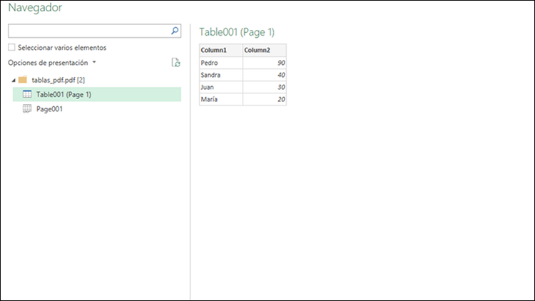 - Ve a Datos > Obtener datos > De un archivo > De PDF.