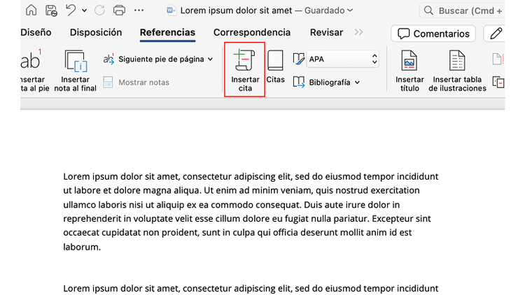 Pasos para citar una fuente en Word