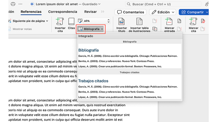 - En Referencias, haz clic en Bibliografía.