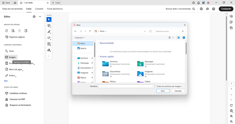 Si prefieres una guía más completa, este es el procedimiento paso a paso para añadir imágenes a un documento PDF con Adobe Acrobat: