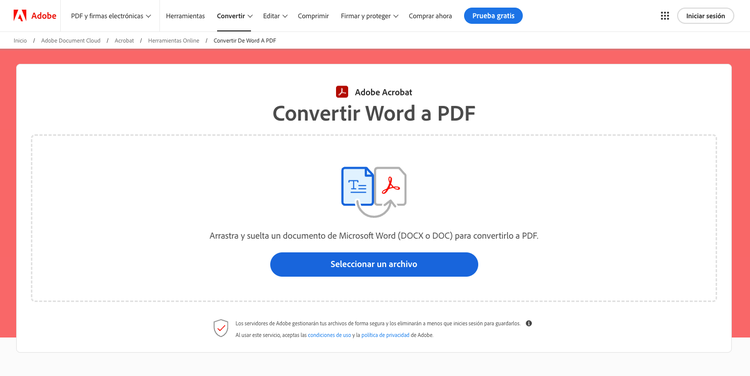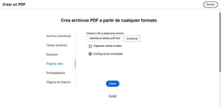 Si tienes Adobe Acrobat instalado en tu dispositivo, puedes convertir un archivo web directamente del formato HTML a PDF: