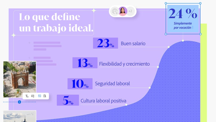 Empieza por organizarte. Adobe puede ayudarte a dar tus primeros pasos: desde editar o unificar tu currículum con Adobe Acrobat, hasta crear un portfolio profesional con Adobe Express o aprender nuevas habilidades a tu ritmo.