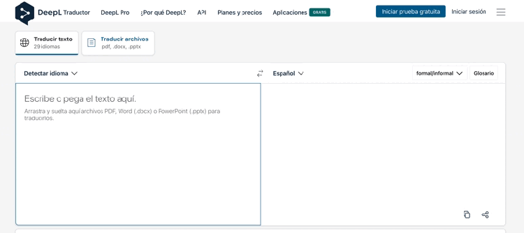 - DeepL: muy preciso, especialmente entre español, inglés, alemán y francés