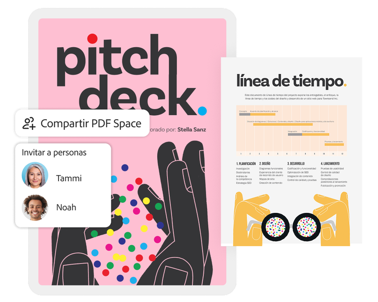 Mantén tus proyectos creativos en marcha con textos integrados y ediciones de imágenes. Combina archivos PDF para crear kits de marca, paquetes de campaña y mucho más.