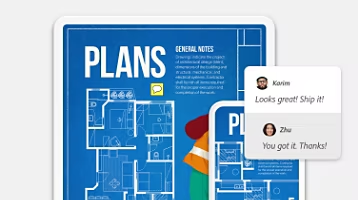 Comparte activos como archivos PDF para revisarlos, comentarlos y aprobarlos en tiempo real. Recopila y aplica los comentarios y, luego, envía los archivos PDF finales para su aprobación segura con firmas electrónicas.