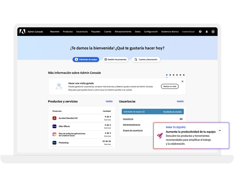 Asigna y reasigna licencias para tu empresa desde una Admin Console centralizada. Además, simplifica la facturación.