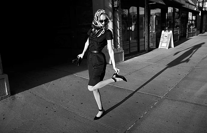 Si vas a tomar retratos en blanco y negro, puede que busque un tono más melancólico y taciturno. No obstante, la clave para conseguirlo es divertirse con el o la modelo y hacer que se sientan cómodos. “Para conseguir una foto melancólica, necesito que te rías de verdad”, cuenta Kravitz. “Porque, cuando te ríes, usas todos los músculos de la cara. Así que, cuando te pido que te relajes, todos los músculos pueden relajarse de verdad”. Si la mandíbula está relajada, el retrato puede ser más favorecedor.