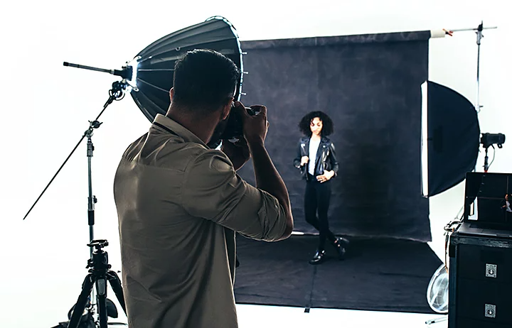 Estas son las ventajas de elegir un fondo uniforme blanco o negro. El blanco puede contribuir a que la ropa destaque más y refleja más luz sobre el contorno del sujeto. “Trabajo con muchos modelos para sitios web y agencias”, cuenta Kravitz. “Les gusta el fondo blanco simplemente porque pueden recortar al modelo del fondo y pegar su silueta sobre otro fondo de forma sencilla”.