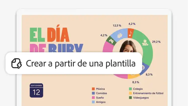 Pon en marcha folletos, infografías o publicaciones para redes sociales con herramientas de creación de contenido sencillas y plantillas de diseño profesional con Adobe Express.
