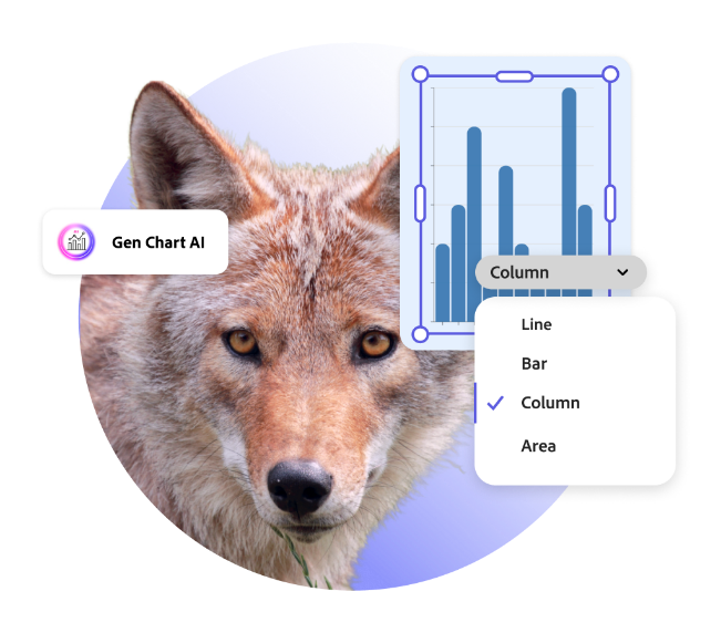 Da igual si quieres comparar datos de ventas mensuales o avistamientos de coyotes en tu barrio a lo largo del tiempo, un gráfico de columnas fácil de leer puede ayudarte a transmitir cualquier mensaje. Con el complemento Gen Chart para Adobe Express, puedes realizar un seguimiento de tendencias, identificar anomalías y realizar predicciones con gráficos de columnas bonitos y claros en un abrir y cerrar de ojos.