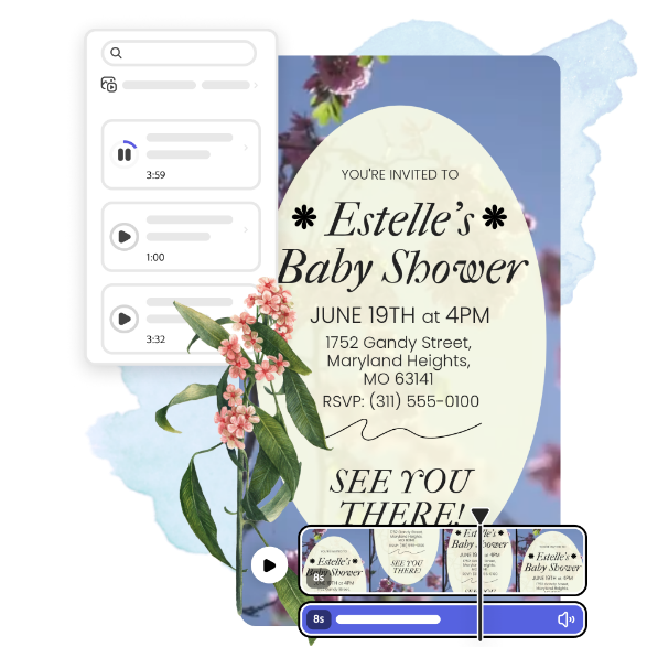 Crea vídeos de invitación personalizados impresionantes para cualquier evento u ocasión con el creador de vídeos de invitación de Adobe Express. Las herramientas de edición de vídeo sencillas y las plantillas personalizables hacen que el proceso sea rápido y fácil.