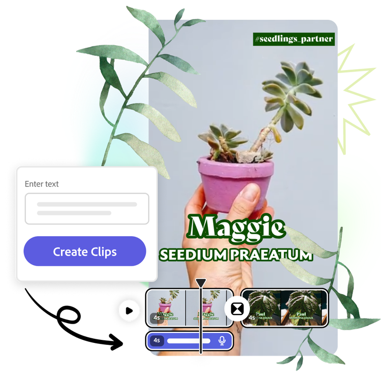 Ajusta el volumen y la duración o sigue editando el vídeo con voz en off de IA en Adobe Express.