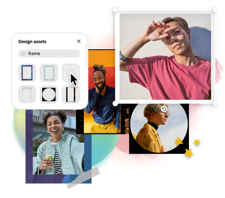 Añade marcos a tus fotos con Adobe Express con plantillas diseñadas profesionalmente o crea tu propio diseño original.