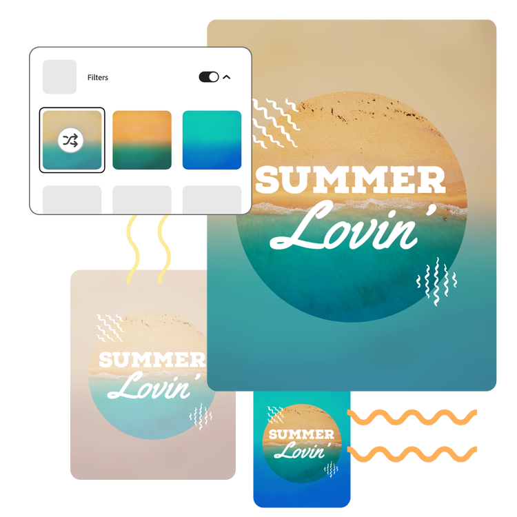 Continúa editando tu foto. Aplica filtros como el duotono o superposiciones de color. Añade un borde o marco para enfatizar aún más el tema de tu diseño. Arrastra y suelta iconos, gráficos y texto en tu nueva imagen difuminada y anima cualquier elemento en cuestión de segundos para cautivar a tu público digital. Dedica el tiempo que quieras a crear algo auténtico.