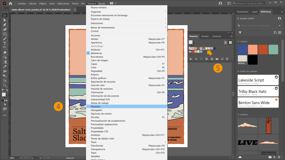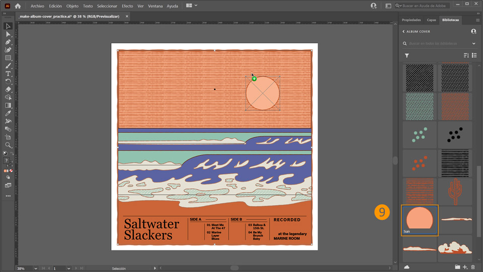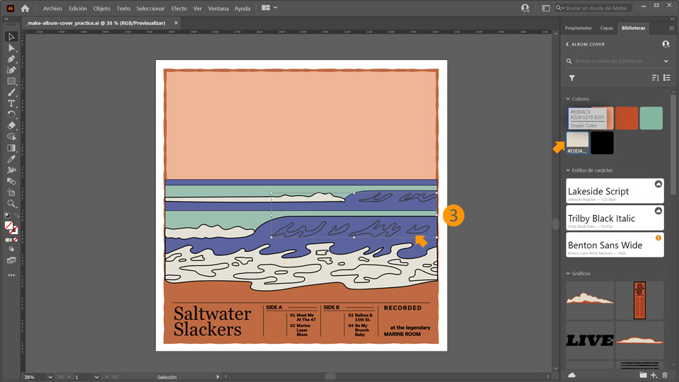 1. Descarga losarchivos de práctica y abre “_make-album-cover_practice.ai” en Illustrator.