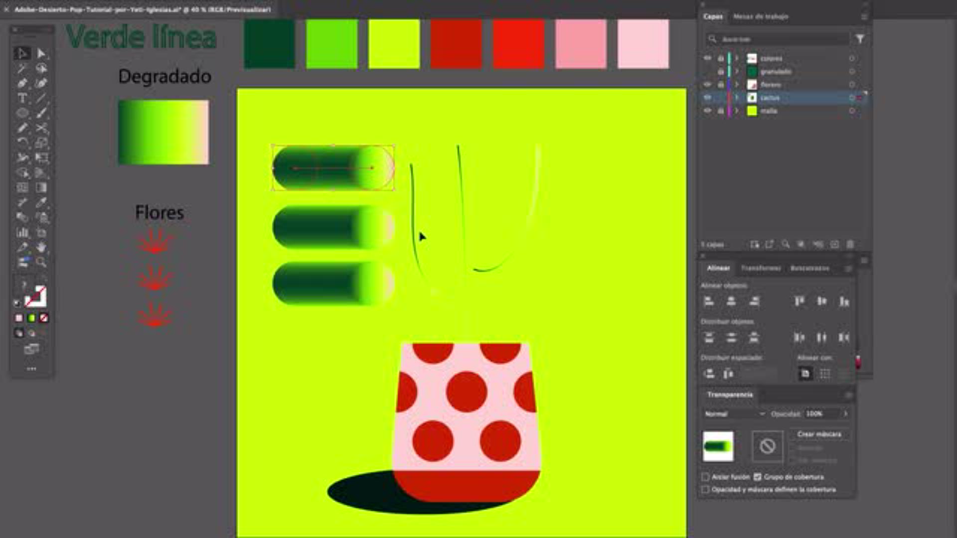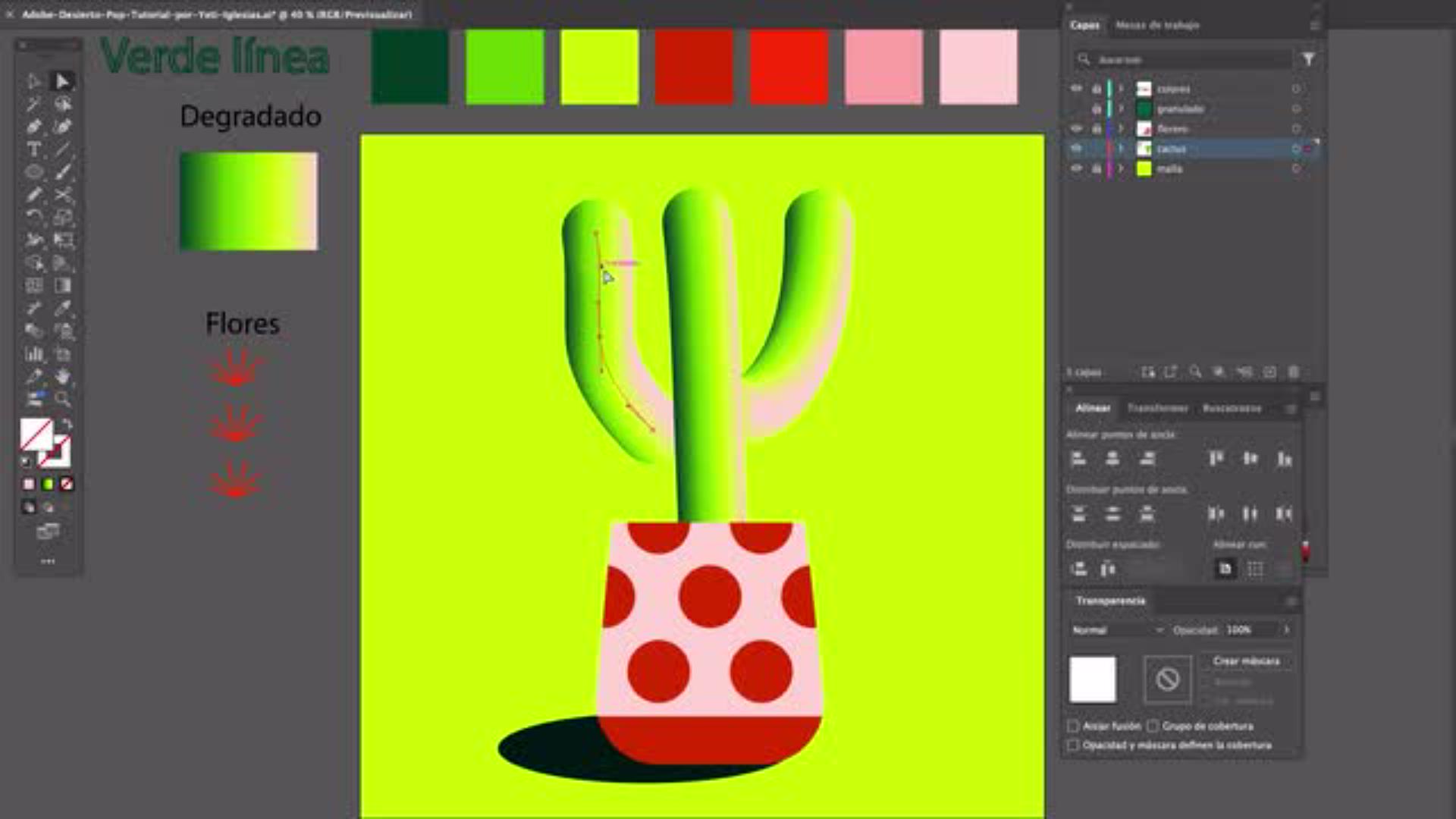 En este tutorial paso a paso, aprenderás cómo dibujar en Illustrator una escena colorida inspirada en el desierto, con un cactus protagonista y un cielo lleno de matices. De la mano de la artista Yeti Iglesias, desarrollarás una ilustración digital con efecto de volumen y profundidad en Adobe Illustrator, dominando herramientas clave como Fusión, Malla, Elipse y Pincel.