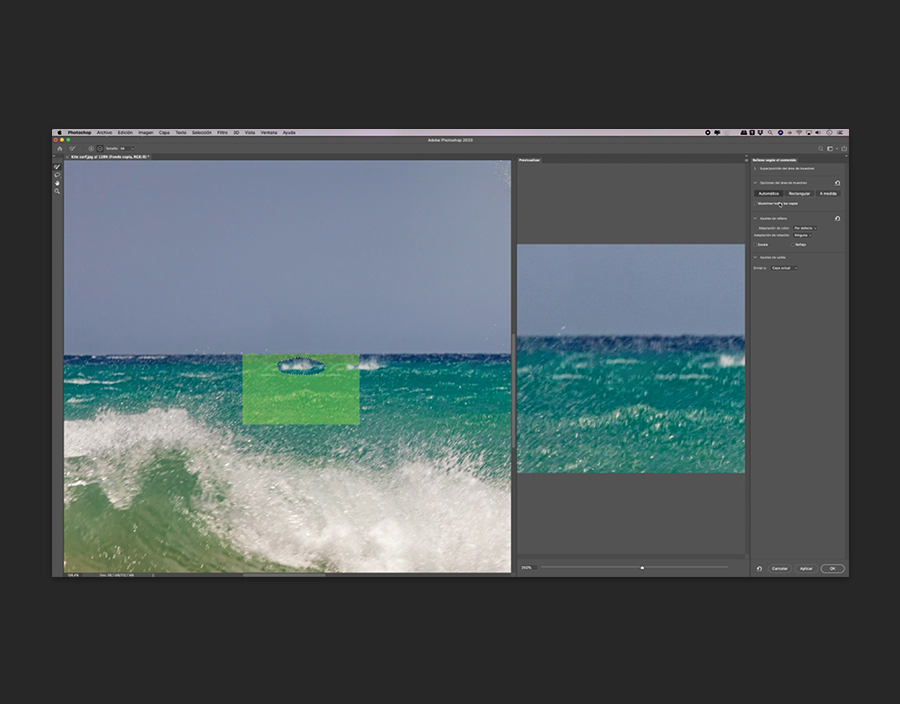 Ve a Editar > Relleno según el contenido y pulsa Aceptar. Enseguida verás que el objeto se ha eliminado de la imagen.