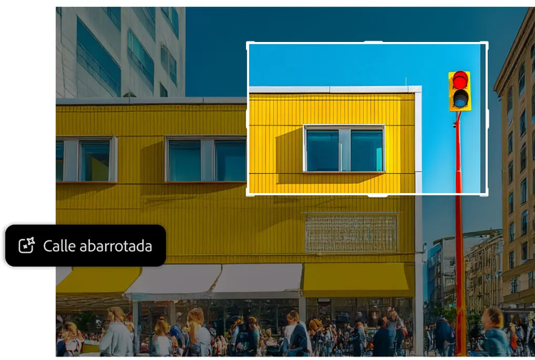Tal vez tengas la imagen perfecta de una persona o de un objeto, pero están descentrados o se ha cortado una parte importante del fondo. Con Ampliación generativa puedes corregir rápidamente esas imperfecciones con resultados de alta calidad.