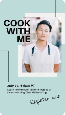 Bring your own, personal story (food or otherwise) to life through templates inspired by celebrity chef Melissa King’s personal recipes, style, and aesthetic.