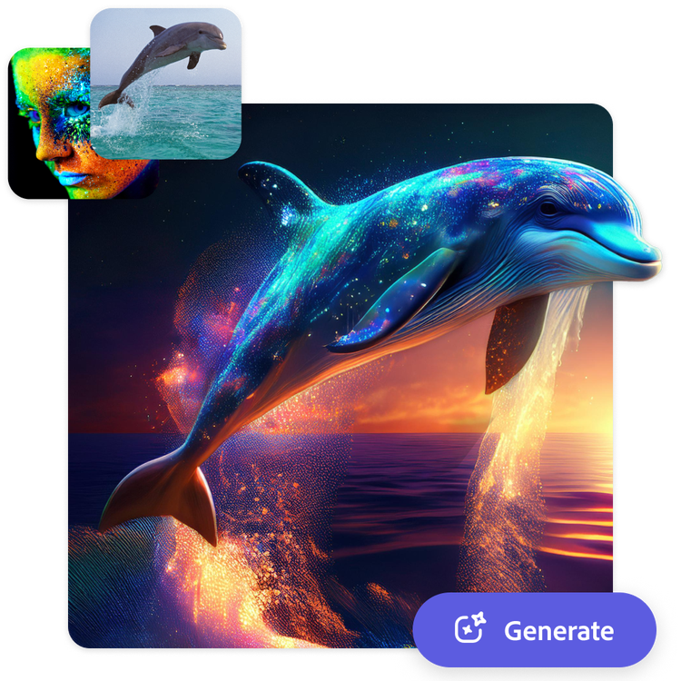 Click Generate. Four results will appear shortly. If you're going for a specific style or composition, upload reference images or tweak the style settings and generate your image again. Each generation costs 1 generative credit per use.