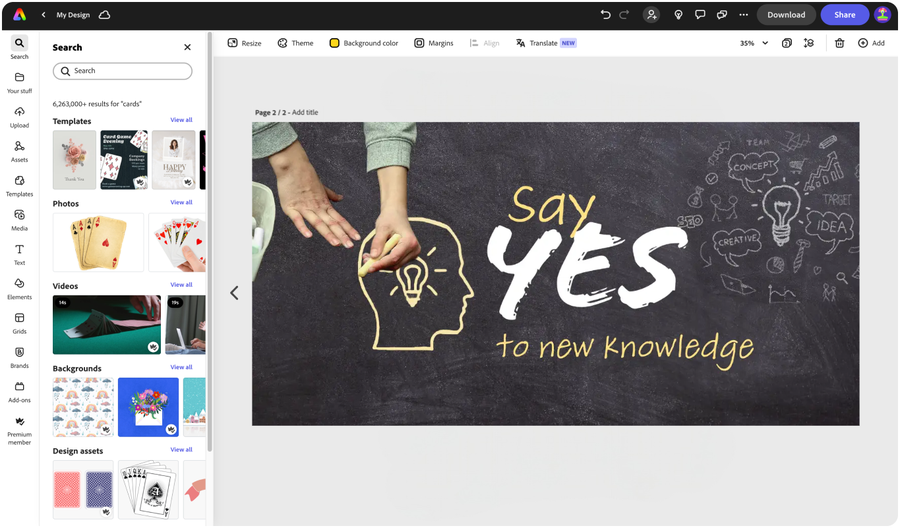 Take advantage of the free images, icons, and design assets available to use from Adobe Express. Or, make your banner more personal by uploading your own images from a variety of photo libraries.