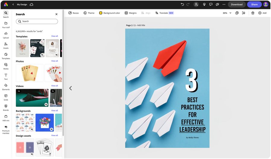 Add your own photos or videos and start your creation from there. You can also import your PSD or Ai files and Adobe Express will recognize all of your layers.