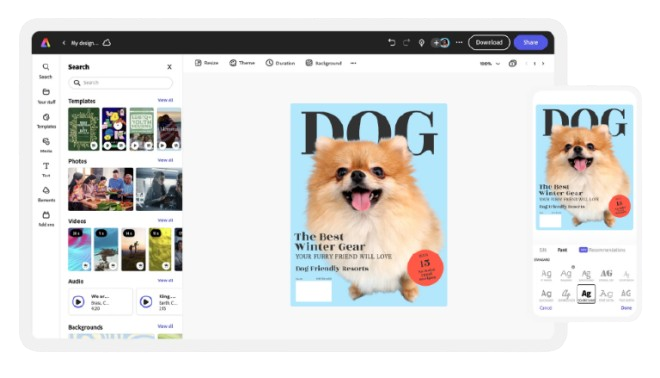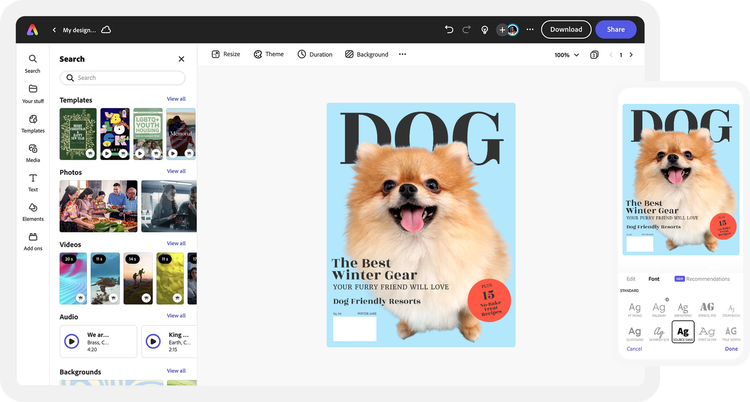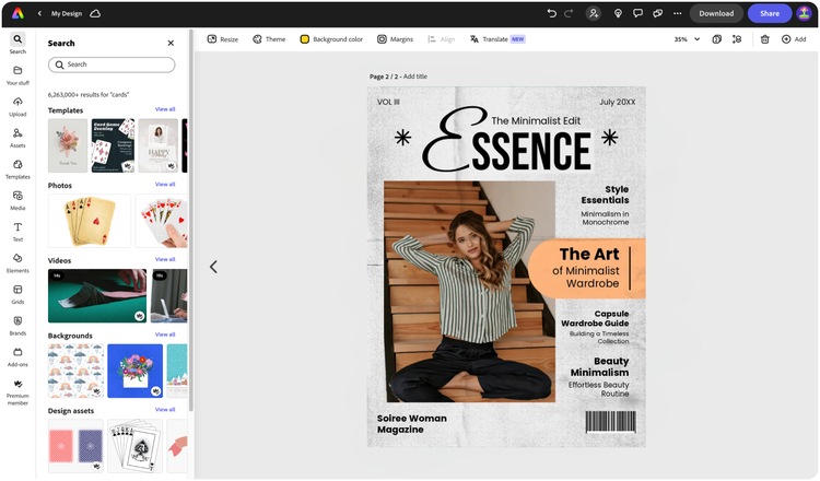 Create stunning digital or printed magazines with Adobe Express, the quick and easy create-anything app. Easily design high-quality magazines that’ll stop your viewers in their tracks with easy-to-use layout and formatting control.