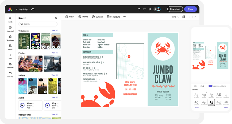 Easily get started in Adobe Express.