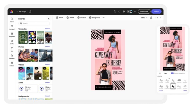 Hone your creativity with the power of Adobe Express. Explore professionally designed templates to get your wheels spinning or create your Instagram giveaway from scratch. Establish a theme for your designs using photos, icons, logos, personalized fonts, and other customizable elements to make them feel entirely authentic. Duplicate designs and resize them to create consistency across multiple types of assets.