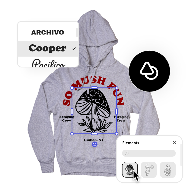 Upload your own photos or add Adobe Stock images. Access thousands of licensed Adobe Fonts or use Generate Text Effect to display a unique message.Brand your hoodie.