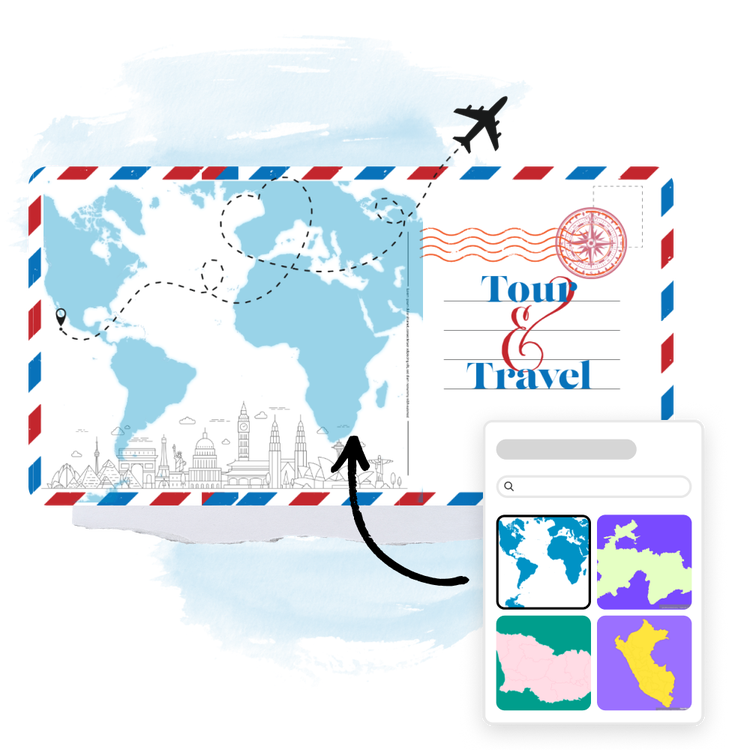 Maps can be used in many ways to enhance your design project, like visualizing regional datasets in an infographic or showing off a dream vacation in a travel brochure. Using the Super Map World map maker add-on in Adobe Express to design your map can help your audience see the intended destination in a creative and engaging way.
