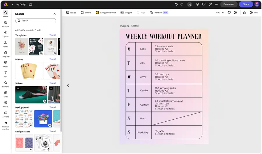 Let Adobe Express be your workout plan design expert.