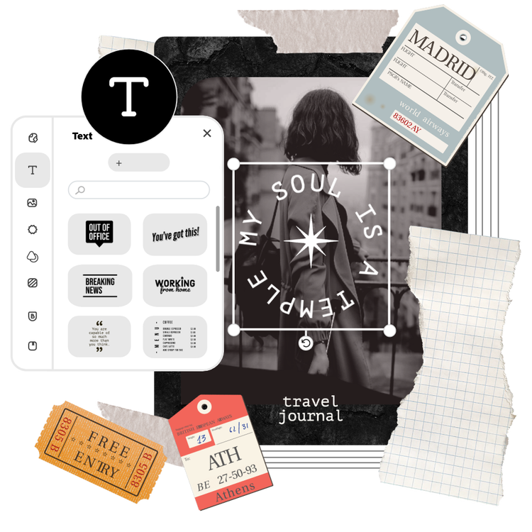 Hosting game night, art exhibition, or creating promotional posters for your club? Use the online editor to find more options for customizing your poster, such as applying one-click filters to your photos and changing the color palette. Unsure of which font to use? Generate it with the unique Generate Text Effect tool. Simply type in your prompt to generate tons of text styles, from metallic fonts to something more textured to capture your audience’s attention.