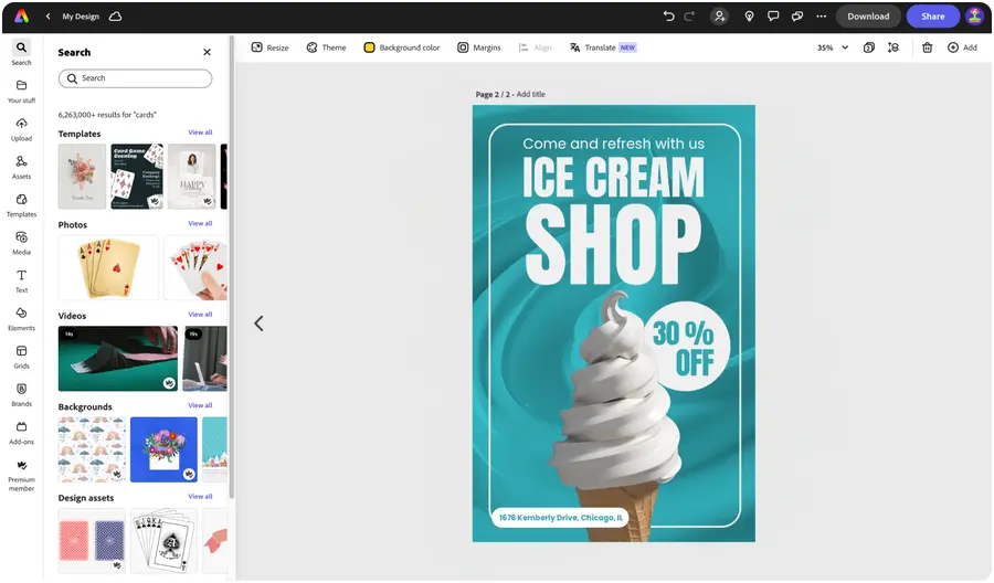 Choose from ice cream templates available in Adobe Express to design something unique in minutes. Print now available for US, UK, Australia, and Canada desktop users.