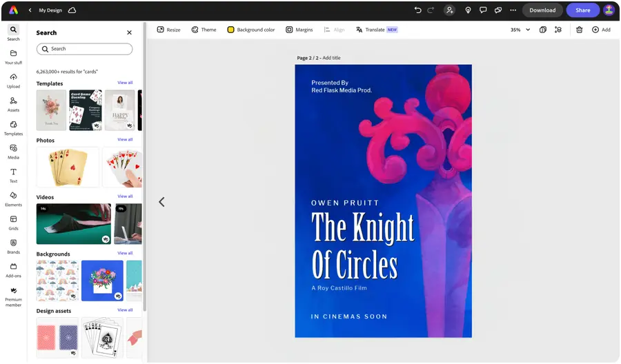 Explore professionally designed movie poster templates to get your wheels spinning or create your own from scratch. Establish a theme for your designs with 1M+ royalty-free professional Adobe Stock photos, videos, music tracks, and design elements, to make your designs feel entirely authentic. With Adobe Express, it’s free and easy to make, save, and share your designs within minutes.