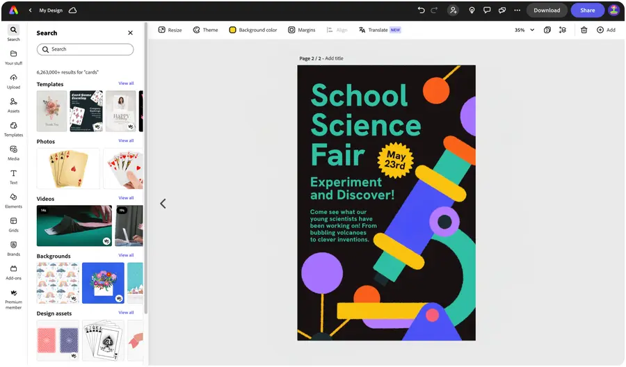 Adobe Express inspires you to think outside the box when it comes to your next project. Make your school poster and then resize it to turn it into social graphics, a school newsletter, handouts, banners, and so much more. There are endless opportunities to turn a creative project into an unforgettable design.