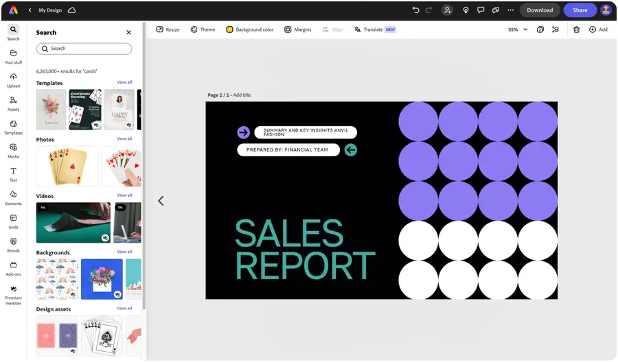 Drag and drop tons of Adobe Stock images, graphics, icons, and so much more to your presentation. Add in your favorite color schemes or use the Color Theme tool to experiment with curated color combinations in your presentation design.Stand out with easy-to-use generative AI design tools.
