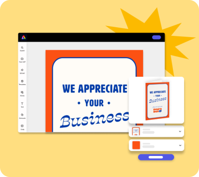 Easily design and order printed custom cards to say thank you, happy holidays, congrats, or just because with high-quality templates and simple editing tools from Adobe Express, the quick and easy create-anything app.