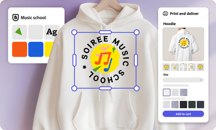 • Everything you need to design and order prints. Adobe Express lets you design and order printed hoodies with ease. Pick a color, preview your hoodie to make sure the design placement and colors look right, then order your hoodies, all from one platform.