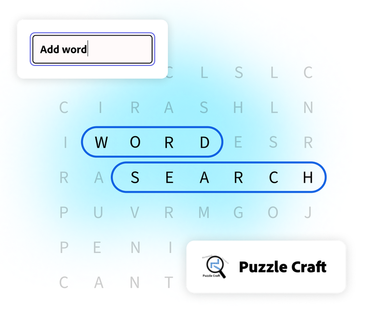 Designing a word search from scratch can be time-consuming. Whether you’re creating word searches for rainy day fun with the kids or to challenge your friends, you can use the Puzzle Craft add-on in Adobe Express to quickly design word searches all while adding personalized flare with colors, icons, borders, and more.