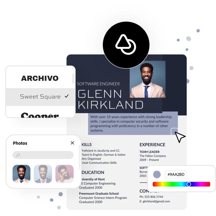 Showcase your experiences, skills, and knowledge with the Adobe Express simple resume builder. With a wide collection of professionally designed resume templates to choose from, it’s easier than ever now to make, save, and print an impressive resume that’ll help you land your dream job. No experience required.