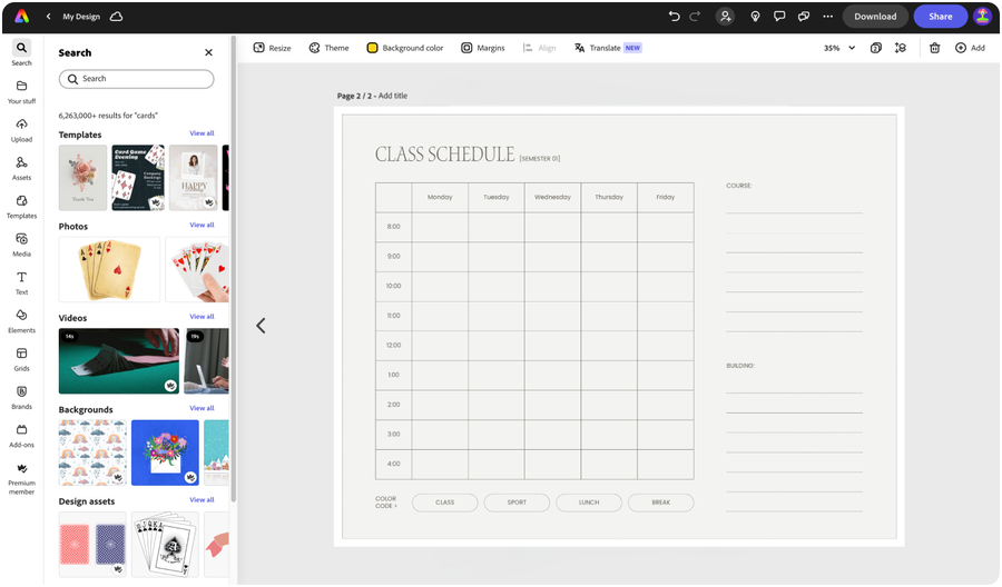 The Adobe Express timetable maker is instant, intuitive, and intelligent.